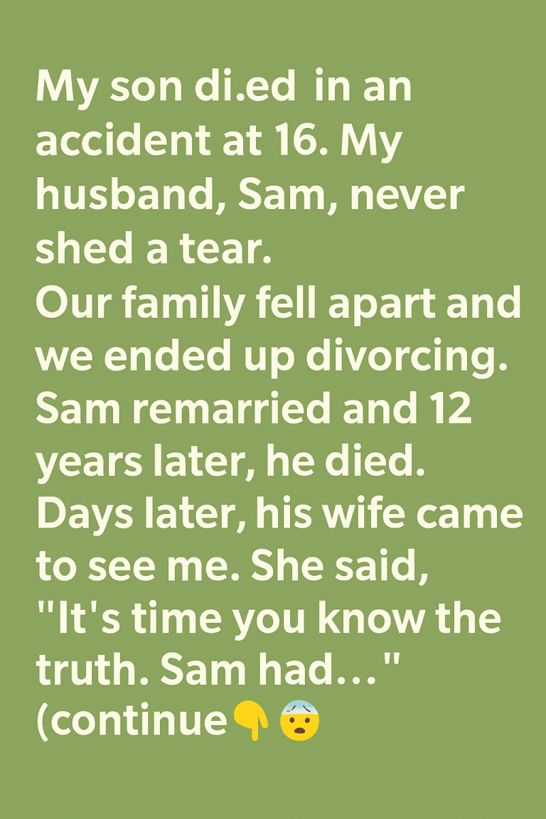 After her teenage son died in a car crash, one woman was already living inside a grief that felt bottomless. But sorrow turned to shock when, on his own deathbed, her husband revealed a secret he had guarded for years: the boy wasn’t biologically his. He had known all along—yet chose to raise him with absolute devotion, believing love mattered more than blood. That final confession, born out of love, became the truth that fractured the family forever.