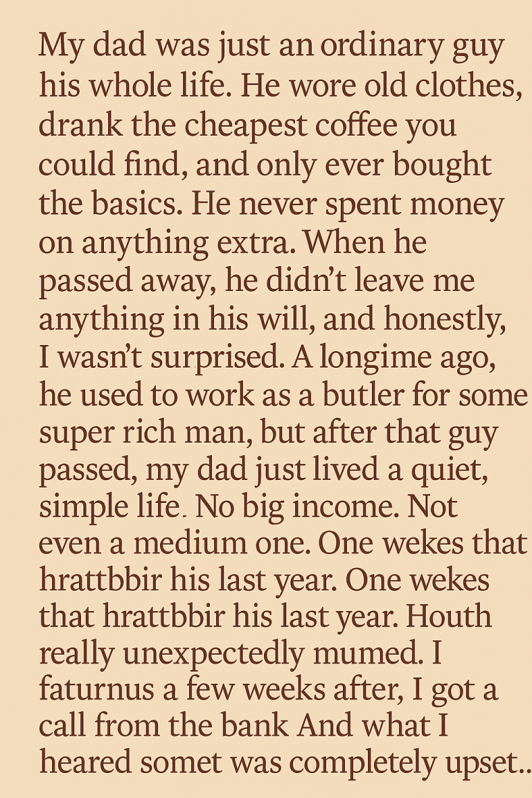 My dad was just an ordinary man his whole life. He wore the same jackets until the elbows gave out, drank instant coffee, and never spent money on anything extra—not even when he got a raise or when I begged him to upgrade that rusted-out car. He was frugal to the bone, and he never explained why.