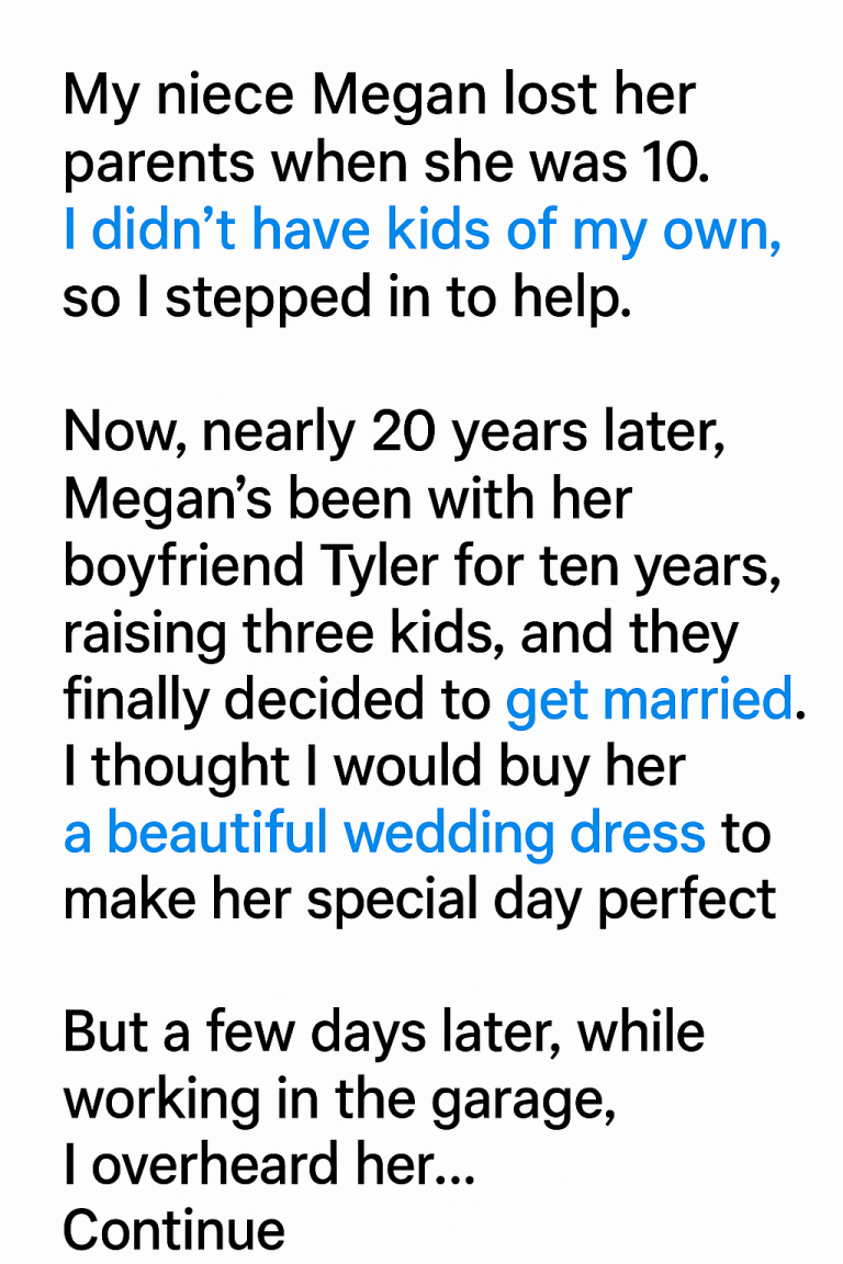 When my niece Megan lost her parents in a car accident at just ten years old, I held her trembling hand at the funeral and whispered a promise: “When you get married someday, I’ll buy your wedding dress.”