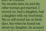 A year into dating my current boyfriend, I found out I was pregnant — unexpected, unplanned, but not unwanted. We were terrified and thrilled, and somehow we held each other steady through the fear. When our daughter arrived, she transformed everything. She added warmth and meaning to a life that had been running on survival mode. It felt like fate gently nudging the universe back into balance.