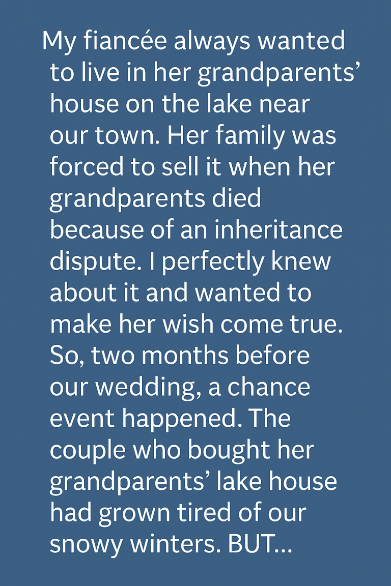 I imagined her face when I handed her the keys at our rehearsal dinner, surrounded by everyone we loved. I imagined the life we’d build there—the holidays, the babies, the quiet mornings on the water.