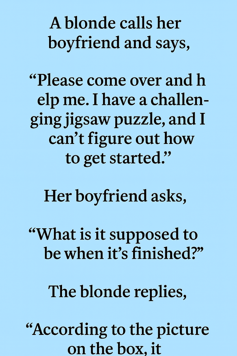 “Please come over and help me. I’ve been staring at this jigsaw puzzle for hours, and I just can’t figure out how to get started.”