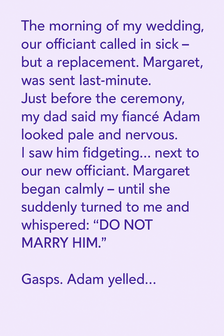 Later I learned the truth: Sarah’s sudden illness wasn’t orchestrated—but Margaret’s arrival wasn’t random either. She had been searching for Adam for years. When she learned he was getting married, she volunteered to officiate the moment she heard Sarah had fallen sick. She needed the truth to come out. She needed someone to believe her daughter’s story.