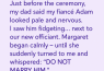 Minutes before the ceremony, my dad pulled me aside, his expression tight.
