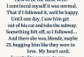“I’ve never been here before. I should feel like an intruder. But I don’t. Maybe this is where I get my life back.”