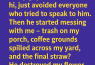The man didn’t reply. He just turned and, with unnecessary force, banged his trash lid shut like it had personally offended him. Then disappeared back inside.