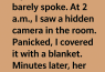At 14, I spent the night at my friend’s house. Her parents, especially her dad, barely spoke. Around 2 a.m., I noticed something odd—a small blinking light in the corner of the room. Upon closer inspection, I realized it was a hidden camera. Horrified, I grabbed a blanket and tossed it over the lens.