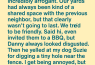 After work, Danny returned to find a brand-new playground built on John’s side of the yard. Tommy and Kevin were playing, laughing loudly.