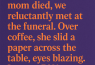 My sister and I hadn’t spoken in years. When our mom died, we reluctantly reunited at the funeral—awkward, distant, each carrying our own weight of resentment. After the service, over lukewarm coffee at a quiet café, Sarah slid a folded paper across the table, her eyes blazing with something between rage and heartbreak.
