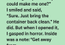 I kept the note, tucked it into my backpack, and acted like nothing had happened.
