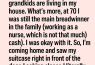 And I’d let it go — for the kids. Lora would climb into my bed at night, whispering, “Nana, I wanna sleep with you!” And little Ben once told me, “When I grow up, I’ll buy you a castle. And you’ll be the queen.”