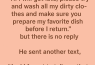 “Clothes are washed. Dinner is ready. And by the way… I read your first text. That’s why I ignored the second one.”
