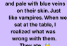 I visited my classmate’s home once. Both he and his parents were skinny and pale, their blue veins visible beneath their skin. They looked almost vampiric. When we sat at the table, I realized what was wrong.