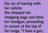 Mortified, she quickly moved her groceries, holstered her gun, and drove straight to the police station to confess her mistake. The desk sergeant listened to her story, laughed until tears rolled down his face, and then pointed to the other end of the counter—