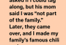 Later, when they came over for dinner, I served my grandmother’s famous chili recipe. As my boyfriend’s mom took her first bite, her eyes lit up. She asked for seconds. She didn’t mention the trip again—just smiled and said, “This chili is incredible.”