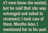 Months later, in casual conversation, I mentioned her to my husband’s aunt. She looked puzzled and said, “But your husband has no sister.”