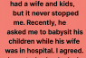 I fell in love with my married neighbor at first sight. I knew he had a wife and children, but that never stopped me. Recently, he asked me to babysit his kids while his wife was in the hospital. I agreed.