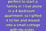 My daughter recently got married, and said my house was perfect to start a family in. I live alone in a 4-bedroom apartment, so I gifted it to her and moved into a small cottage with my sister.