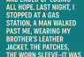 Last night, I stopped at a gas station. A man walked past me, his steps hurried, his head down. But then I saw it—the jacket. My brother’s leather jacket. The patches, the worn sleeve, even the faded initials stitched inside the collar. It was his.