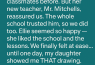 The weeks passed in a blur of school lunches, reading logs, and bedtime stories. Ellie seemed fine—smiling, eating, talking about her new classmates—but a shadow lingered over her. A mother’s intuition caught it, like a ripple under still water.