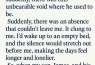 Suddenly, there was an absence that wouldn’t leave me. It clung to me. I’d wake up to an empty bed, and the silence would stretch out before me, making the days feel longer and lonelier.