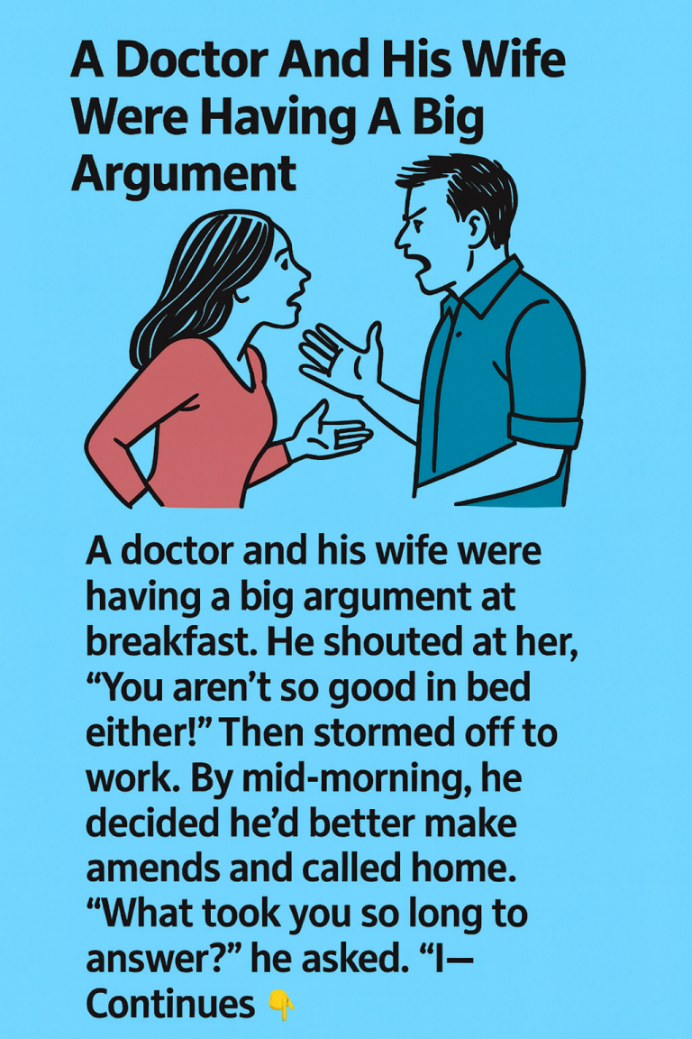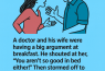 A doctor and his wife were having a big argument at breakfast. He shouted at her,
