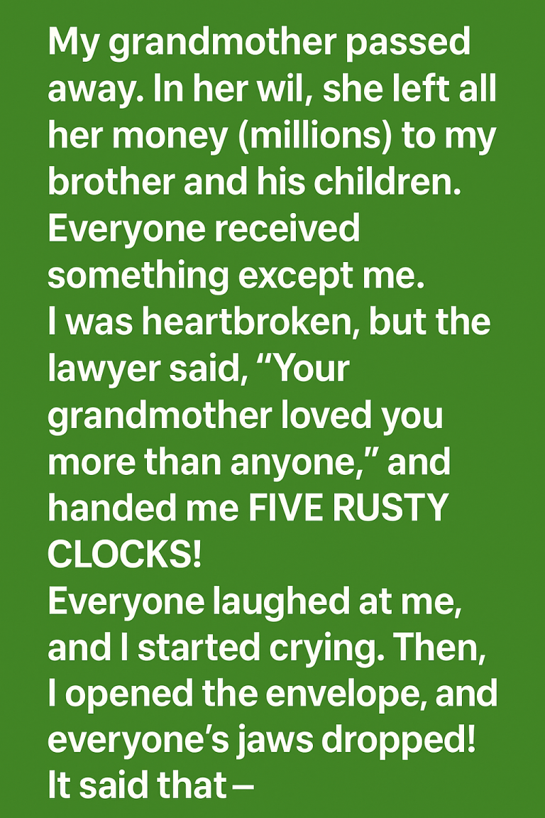 Tears rolled down Linda’s cheeks as she clutched the clocks to her chest. The gentle ticking echoed in the room, steady and comforting — like her grandmother’s heartbeat, still there, still guiding her.