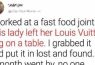 One day, while working at a fast food restaurant, I noticed a lady had left her Louis Vuitton bag on a table. After waiting 20 minutes and realizing she wasn’t coming back, I decided to take the bag to the lost and found. I didn’t look inside, just placed it there and went back to work.