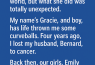 My name’s Gracie, and life has thrown me some real curveballs. Four years ago, I lost my husband, Bernard, to cancer.