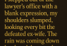 I stepped out of the lawyer’s office with a blank expression, my shoulders slumped, looking every bit the defeated ex-wife. The rain was coming down hard, and the gray sky matched my mood — or at least the mood I wanted people to think I was in.
