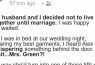 As I waited in bed, wearing my best garments, I heard him whispering something to his mom behind the door. Mrs. Green? What was she doing here? No way she would turn into one of those mothers-in-law, who need to instruct their precious son on the first night! Or worse, could she be here to instruct me?