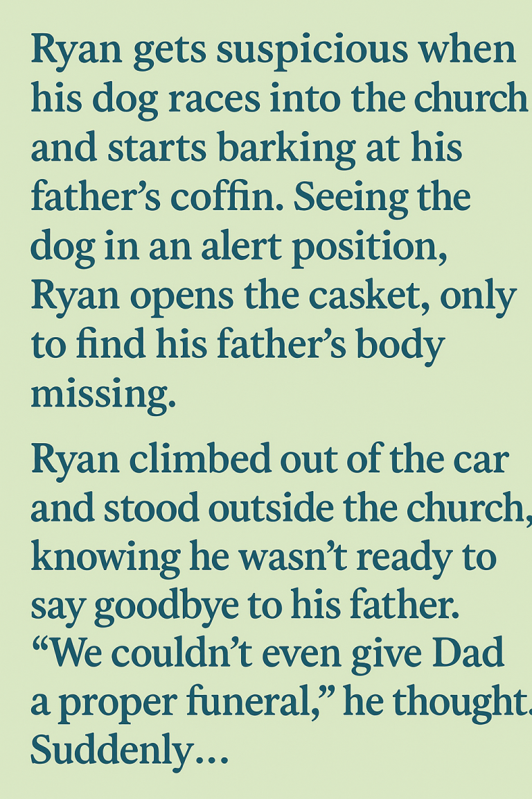 Ryan climbed out of the car and stood outside the church, his chest heavy. He wasn’t ready to say goodbye to his father. The grief sat in his throat, sharp and unrelenting. We couldn’t even give Dad a proper funeral, he thought bitterly. That’s when Bella, his loyal German Shepherd, barked sharply, her growl cutting through his thoughts.