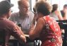 “Sit down, girl,” Linda patted the chair next to her, not next to Jacob. “While we wait for our appetizers, I have a few questions for you.”