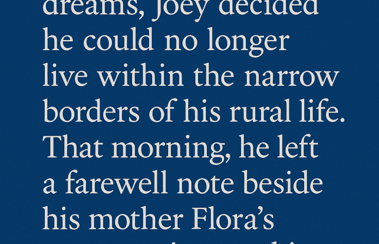 As a 16-year-old brimming with ambition and restless dreams, Joey decided he could no longer live within the narrow borders of his rural life. That morning, he left a farewell note beside his mother Flora’s worn sewing machine, its needle still threaded with white cotton from the night before.