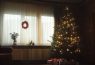 A tall Christmas tree stood in the center of the room, glowing warmly with twinkling lights and ornaments.