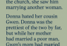 Donna had planned to marry the wealthy Brian no matter what it took. But when she arrived at the church, she saw him at the altar—marrying another woman. And that woman was none other than her cousin, Gwen.