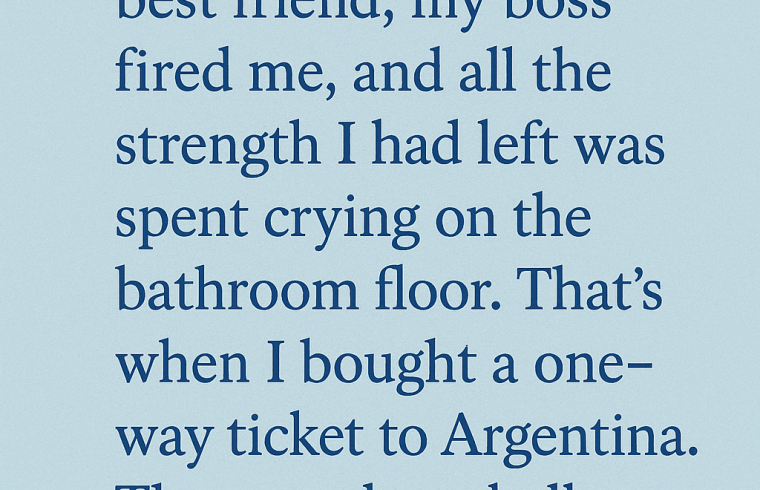 That night, numb and hollow, I opened my laptop and bought a one-way ticket. Destination: Argentina. Far enough that my ghosts couldn’t follow me.