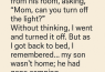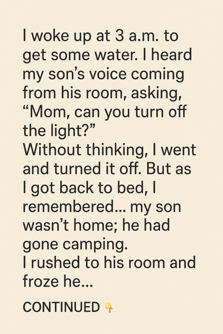 Without a second thought, I leaned in, flicked the switch, and started walking back to bed. But halfway down the hallway, my blood ran cold. My son wasn’t home — he was away on a camping trip.