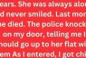 This woman had lived on the 8th floor of my building for 50 years. She was always alone, and never smiled. All the neighbors avoided her because she could start a fight at any moment. Last month, she died. The police knocked on my door, telling me I should go up to her flat with them.