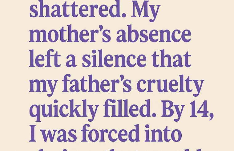 My mother had died when I was 12, breast cancer claiming her frail body. She was a gentle, weary woman who endured my father’s cruelty in silence, scraping together meals while he drank his paycheck away. By the time I was 14, he ordered me to find work. At 16, I dropped out of school to support us both.