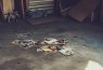 The workbench, and the floor — all covered in photos. Dozens of them.