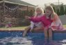 Ava and Lily fell into the pool, arms flailing, eyes wide with shock.