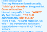 Dad’s voice was firm. “It’s our anniversary, Jeremy. Our rules.”