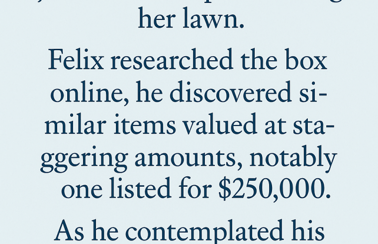 That night, curiosity gnawed at him. Searching online, he discovered similar boxes valued at staggering sums—one listed at $250,000. For the first time, Felix saw a way out of endless struggle, a better life for Alice.