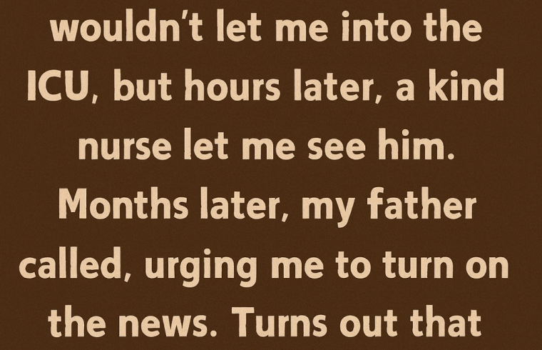 When my father had a heart attack, I rushed to the hospital at 2 a.m. They wouldn’t let me into the ICU at first, but hours later, a kind nurse allowed me to see him briefly. Months later, my father urged me to turn on the news—and I froze.