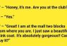H – “Hello?” . W – “Honey, it’s me. Are you at the club?”