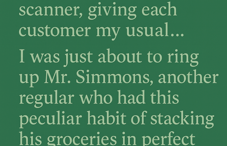 The grocery store I worked at was small—more like a large convenience store, really—but it had its own kind of charm. It wasn’t fancy, but it was familiar, a little hub of everyday life. We had our cast of regulars, and in a place like that, you got to know people by the patterns of their shopping.