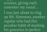 I was just about to ring up Mr. Simmons, another regular with a peculiar habit of stacking his groceries in perfect little towers on the conveyor belt, when the automatic doors at the front burst open.