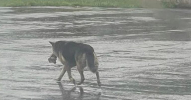 It was a heartbreaking sight: a German Shepherd was spotted wandering around on her own in the streets of Detroit, with nothing but her favorite stuffed animal to keep her company.