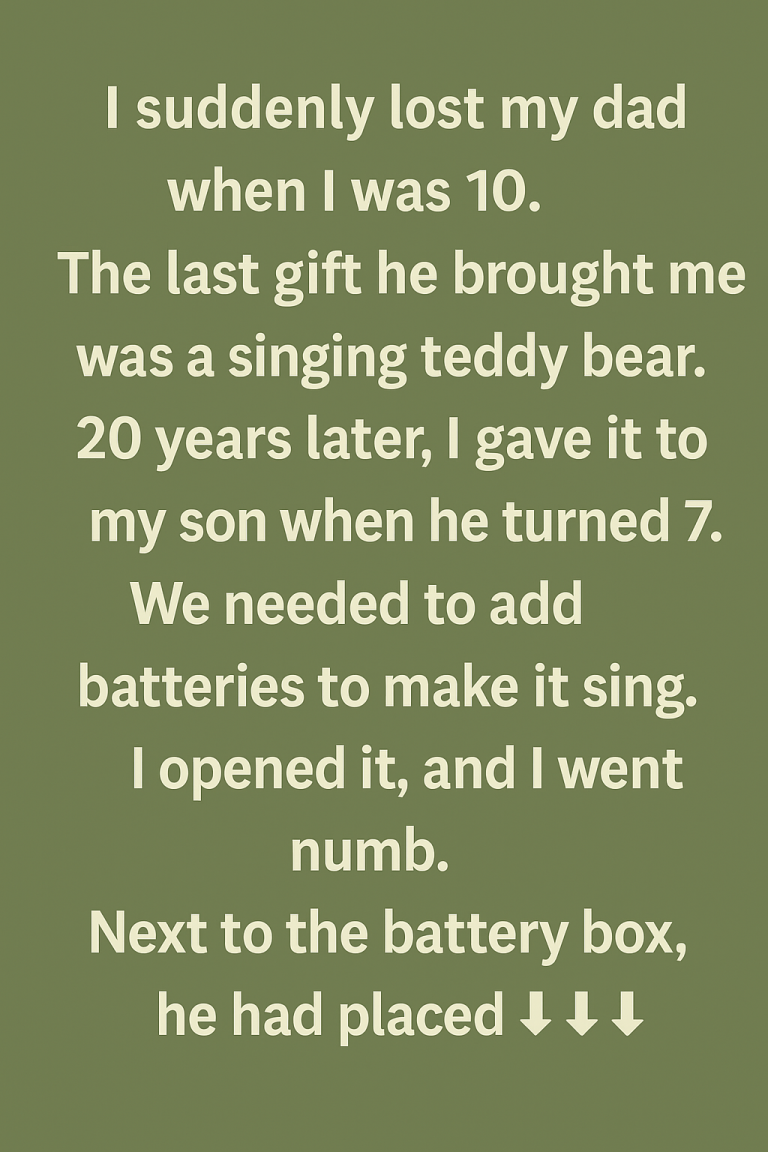 When I was ten years old, I lost my dad suddenly. One moment he was there, larger than life, and the next he was gone—leaving a silence that followed me into adulthood. The last gift he ever gave me was a singing teddy bear. I clutched that bear for years, pressing its paw just to hear the tinny melody and pretending, for a moment, that nothing had changed.